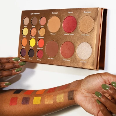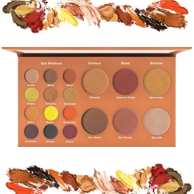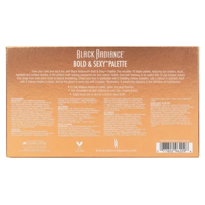 Have your cake and eat it too, with Black Radiance® Bold & Sexyâ„¢ Palette! This versatile 18 shade palette, featuring eye shadow, blush, highlight and contour shades, is the perfect mulit-tasking companion for your beauty routine. Give new meaning to an eyeful with 12 eye shadow shades that range from sexy earth tones to bold & smoldering. Shape your face to perfection with 2 chiseling contour powders, add a natural or dramatic flush with 2 intense shades of blush, and be the gleam in every eye with 2 poppin’ illuminators. A palette this fabulous is the definition of multifaceted.