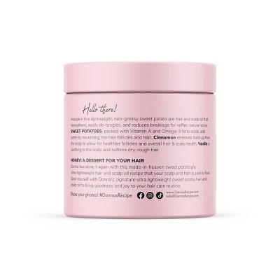 Indulge in Donna’s Recipe Sweet Potato Pie Extra Creamy Hair and Scalp Oil, a lightweight, non-greasy hair oil that strengthens, easily de-tangles, and reduces breakage for softer, natural shine.