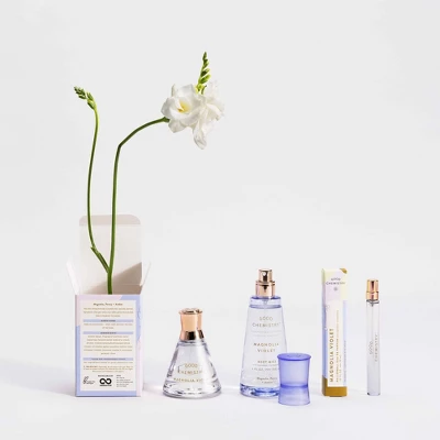 Good Chemistry Magnolia Violet Travel Spray Eau de Parfum Perfume invites you on a unique adventure with its sheer floral aspects and warm undertones. With notes of magnolia, peony, and amber, Magnolia Violet Eau de Parfum travel perfume spray is romantic and captivating with true elegance.