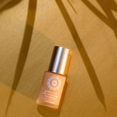 The soft, diffused light of ‘golden hour’ blurs imperfections and adds an ethereal glow to skin. We aimed to replicate this mystical aura with our new Golden Hour Skin Perfecting Liquid Foundation. Hydrate, nourish and smooth complexion for a medium finish that is weightless.PRODUCT SHADESSupernatural – neutral light shadeLuminous – medium neutral with a hint of warmthMalibu – medium shade great for olive or Mediterranean skin tonesFiji – medium tan neutralMontego – warm tan neutral for richer skin tones