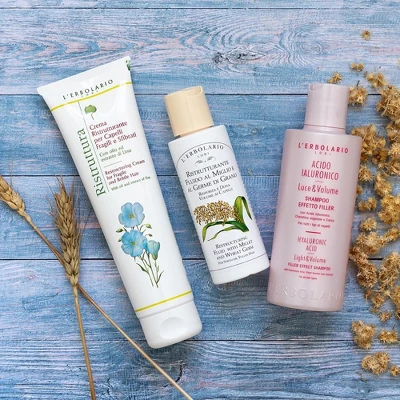 A restructuring and protecting treatment for dry, brittle hair with three uses, this L’Erbolario Restructuring Fluid repairs hair in an instant. It fixes the outer surface by re-compacting the numerous scales that make up it, preventing split ends. It shields your hair against environmental aggressors like the sun, smog, and salt as well as physical aggressors like brushes, elastics, pins, and hair dryers. Your hair gets an immediate boost in beauty, becoming shinier, simpler to comb, and having body. Your hairstyles are improved, with more volume than before.
