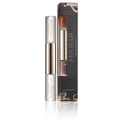 Twist off one or both sides and glide on your bare skin. For a more fun and fragrant experience, personalize and enhance your Blackberry Tonic and Whipped Almond Layering Duo Rollerball by applying one or both scents as a base layer to pulse points to help your scent last. Next, spritz a MIX:BAR Hair & Body spray from head to toe to refresh and elevate the scent. Glide the rollerball over the body as desired for an impromptu sensory experience anywhere or as a fragrant touch-up throughout the day. The MIX:BAR Layering Duo Rollerball may be worn alone, or mixed and layered with other MIX:BAR fragrances to create your own signature scent!