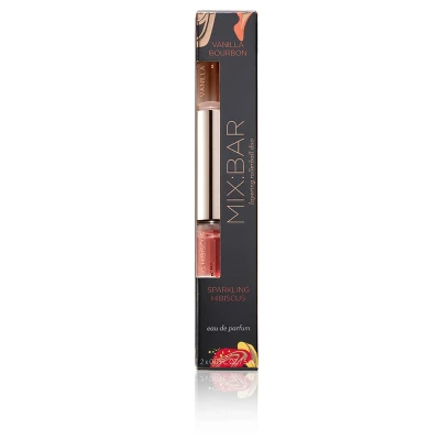 Twist off one or both sides and glide on your bare skin. For a more fun and fragrant experience, personalize and enhance your Sparkling Hibiscus and Vanilla Bourbon Layering Duo Rollerball by applying one or both scents as a base layer to pulse points to help your scent last. Next, spritz a MIX:BAR Hair & Body spray from head to toe to refresh and elevate the scent. Glide the rollerball over the body as desired for an impromptu sensory experience anywhere or as a fragrant touch-up throughout the day. The MIX:BAR Layering Duo Rollerball may be worn alone, or mixed and layered with other MIX:BAR fragrances to create your own signature scent!