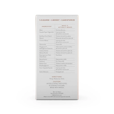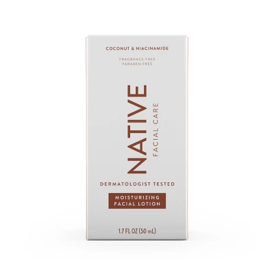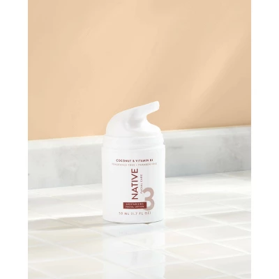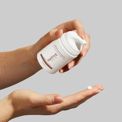 With Native’s Moisturizing Facial Lotion, we’ve used just 16 thoughtful ingredients to craft a lotion that is fragrance free and paraben free. This fragrance-free moisturizing lotion made with Vitamin B3 (niacinamide) provides all day hydration. Just pump, moisturize, smile, and repeat. Life is complicated enough, your skincare doesn’t have to be. Step 3 of our simple moisturizing skin care routine.